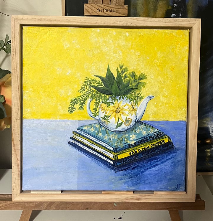 I finished my ‘Ode to Van Gogh’ earlier this month and yesterday finished a ‘Poinciana’ painting. The Poinciana painting was from my workshop I did with David Hinchcliffe in February as I redid as I wasn’t happy with it. Both these painting pushed me out of my comfort zone, but I am happy that I achieved this goal of getting back to canvas painting.