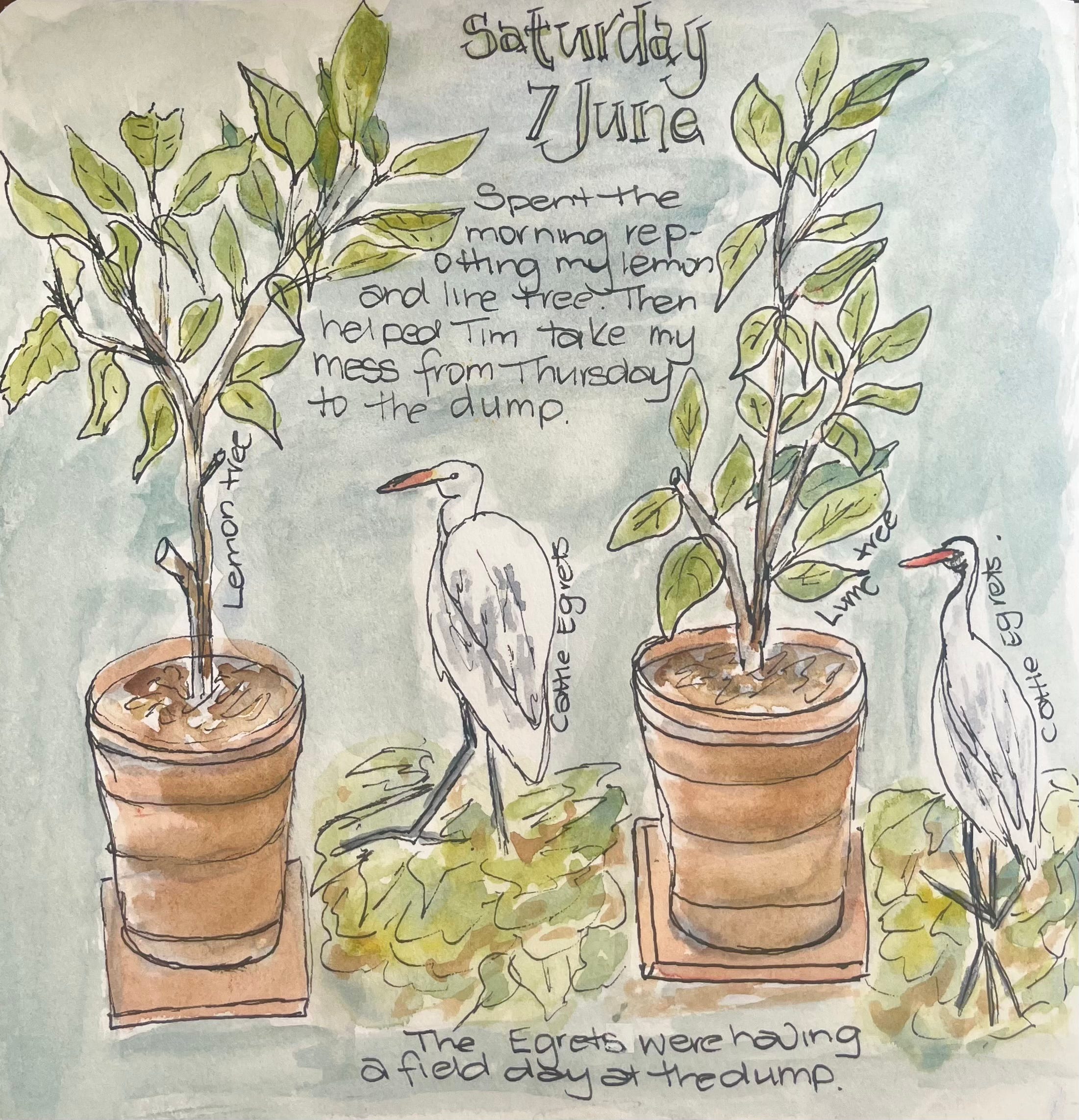 The mess I made on Thursday in the garden meant a trip to the dump with the Cattle Egrets having a field day with all the green waste. My lemon and lime trees got some attention, which will hopefully mean a good crop in Spring.