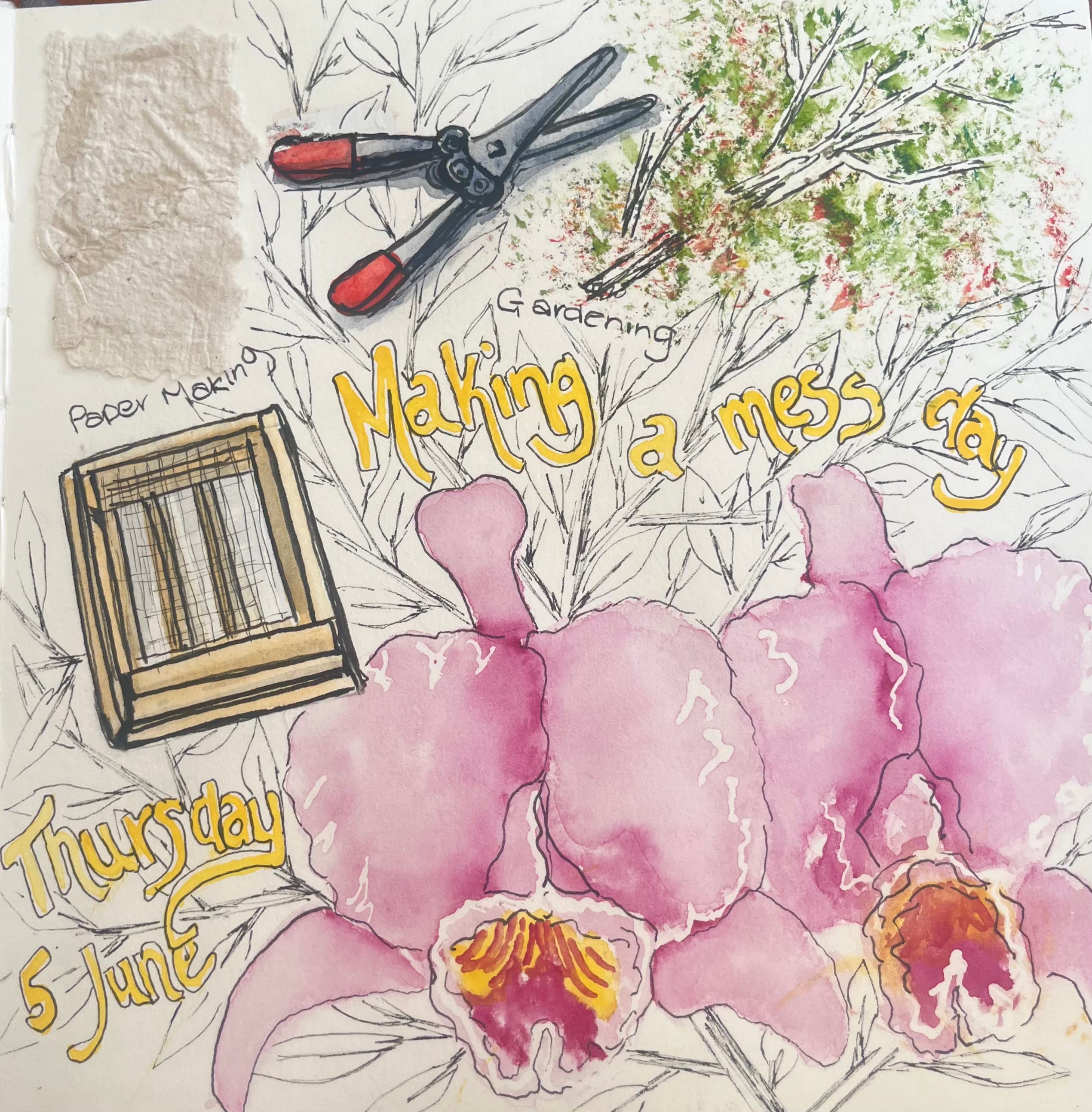Thursday the 5th of June was a messy day as I spent the morning making paper and the afternoon tidying up the garden. My orchids had opened even more and I recorded them, although I am not happy with how they turned out.